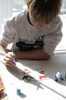 i decided to do art this morning. it wasn't necessarily on my schedule that way, but i was just in the mood. which is really saying something, because to be honest i am not a natural crafty-type person (sorry sarah and bethany). aj had gotten a bird house for christmas that needed to be painted and ry had gotten a paint by color. they both did a great job.